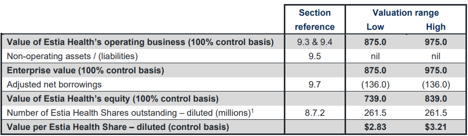 Kroll backed out a fair value range of A$2.83-$3.21/share - see page 111 - with estimates based primarily on DCF. Page 50 onward goes into detail on this valuation approach.