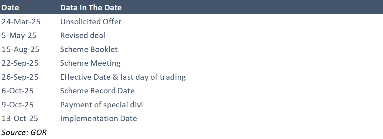 The Scheme Booklet is now out, with a shareholder vote on the 22nd September. The IE (Deloitte) says fair & reasonable. It is.
